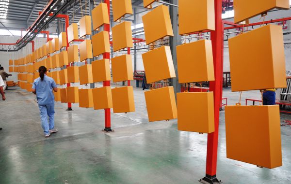 德國進(jìn)口的全長250米的全自動(dòng)噴涂生產(chǎn)線,以及木紋轉(zhuǎn)印車間。